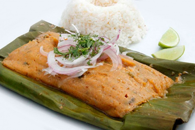Una masa de plátano verde rellena de pescado (corvina), maní y especias, que se envuelve en hojas de plátano y se cocina al vapor. Se sirve con salsa de cebolla y tomate. Es otro plato típico de Manabí y se consume como bocadillo o como entrada.